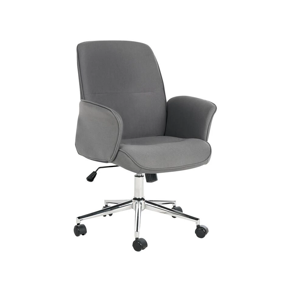 Elegante bureaustoel met opgerolde armleuningen. Zorg voor betere werkcondities met deze stijlvolle en comfortabele bureaustoel. Hij is uitgevoerd met duurzaam textiel, en voorzien van een gewatteerde zitting en zachte armleuningen die het gebruikscomfort verbeteren. Het 360 graden draai- en hoogteverstelmechanisme zorgt ervoor dat je de stoel kunt aanpassen aan je behoeften, zodat de doorgebrachte uren achter je bureau aangenamer worden.