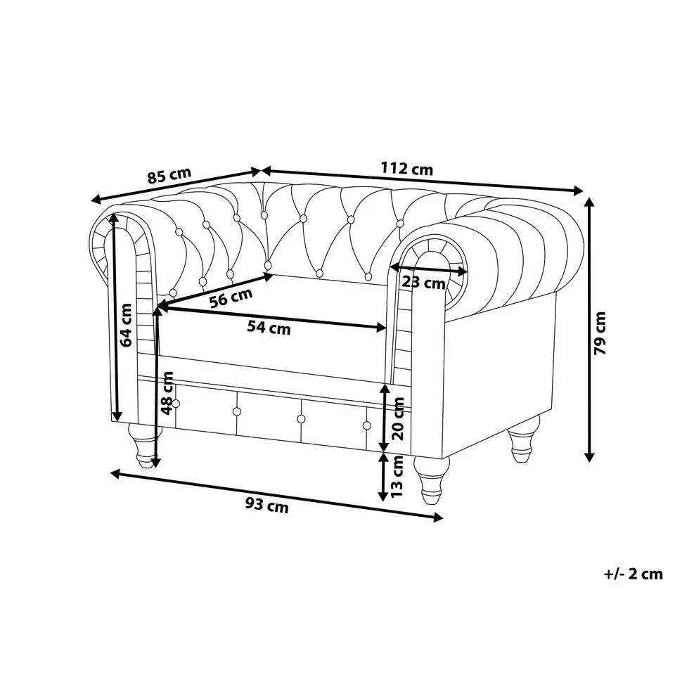 Belangrijkste eigenschappen: Brede, comfortabele zitoppervlak, Stijlvolle Chesterfield-look, Tijdloos design, Hoogwaardige kwaliteitsmaterialen, Precieze afwerking