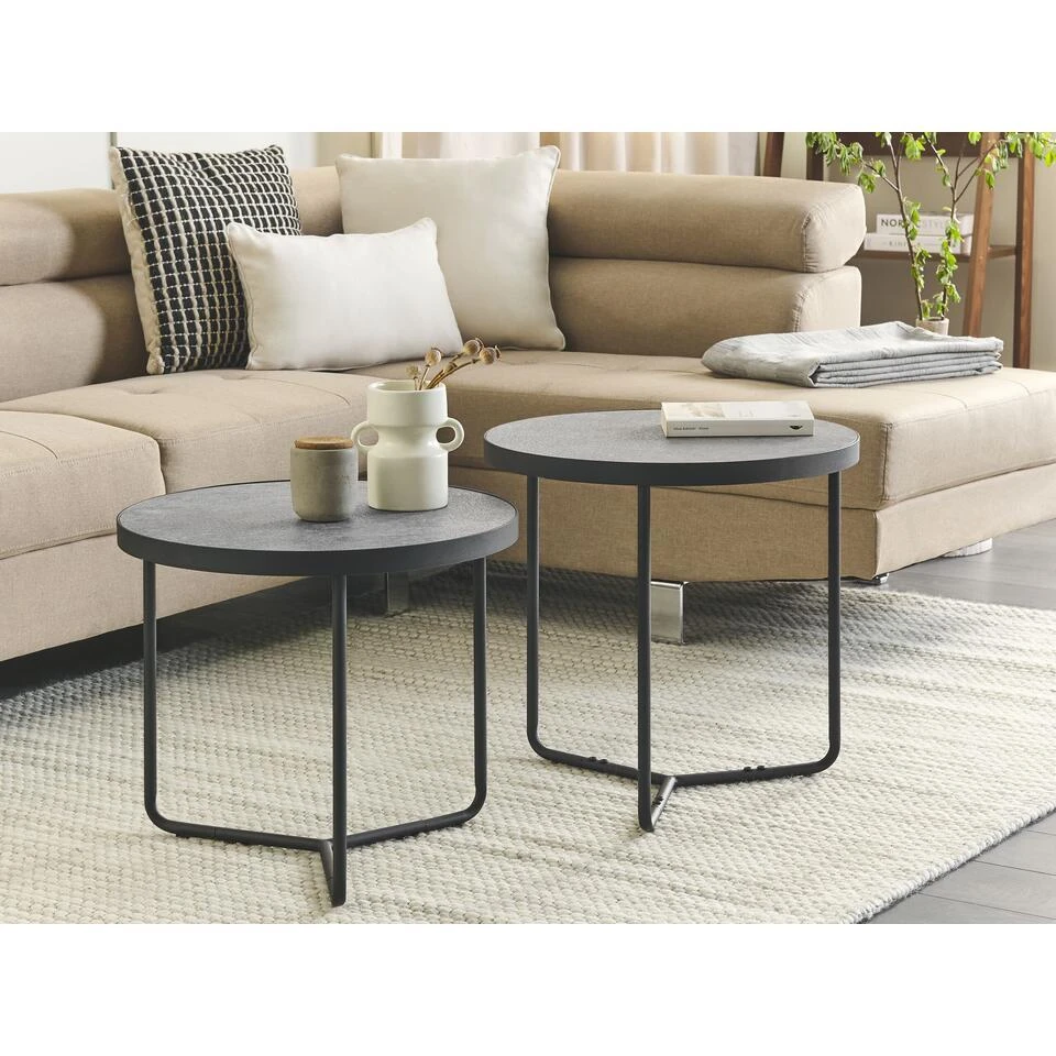 Ronde, middelgrote salontafel in industriële stijl. Voeg een modern karakter toe aan de woonkamer en creëer een stedelijke sfeer met deze industrieel geïnspireerde salontafel. Het ronde tafelblad met een betonachtige afwerking zorgt voor een perfecte plek om kaarsen, planten en foto’s te plaatsen of om uw gasten een drankje te schenken. Deze multifunctionele, kleine bijzettafel kan ook worden gebruikt als nachtkastje of accent in de hal.