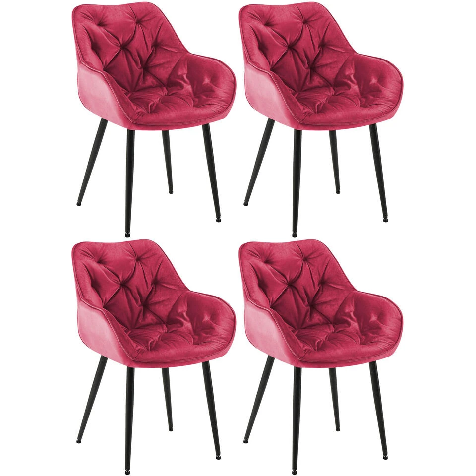 Met de Set van 4 eetkamerstoelen Tanna komen stijlbewustzijn en zitcomfort samen. De fauteuilvormige stoelen overtuigen niet alleen door hun moderne uiterlijk, maar ook door hun hoge comfort, dat wordt geboden door verhoogde armleuningen en gecapitonneerde rugleuningen. Dankzij de onderhoudsvriendelijke materialen kan elke eetkamerstoel snel en gemakkelijk worden schoongemaakt. Een modern onderstel van metaal geeft de set stabiliteit. Er zitten vloerbeschermers onder de poten, die krassen en vlekken op de vloer voorkomen. De moderne set presenteert zich in liefde met stijl in acht kleurvariaties: Blauw, bruin, creme, donkergrijs, grijs, roze, rood of zwart.