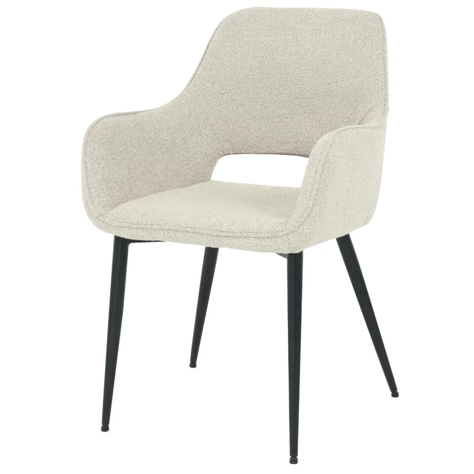Geniet van deze prachtige eetkamerstoel van onze eigen collectie DS4U. De Lenon eetkamerstoel in bouclé is absoluut favoriet! Onze eigen eetkamerstoel Lenon heeft een moderne uitstraling. Daarnaast zit hij extreem comfortabele zit. Dit komt omdat Lenon een extra diepe zitdiepte heeft. Ideaal wanneer je wat langer bent. Lenon is voorzien van een opening in de achterzijde voor een open uitstraling. Lenon is verkrijgbaar in drie mooie kleuren bouclé (ivoor, beige en grijs) en als eetkamerstoel. Combineer deze items samen voor eenheid in het interieur. Het onderstel bestaat uit vier metalen poten in het zwart. Breng rust en eenvoud naar jouw interieur met onze prachtige Lenon-serie!
