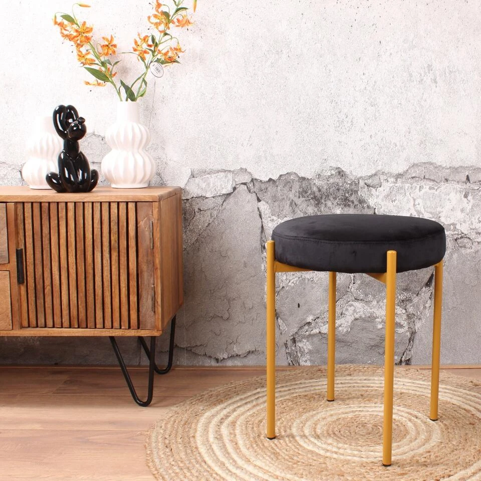 DS4U® Mika Velvet Kruk – Stof – Zwart