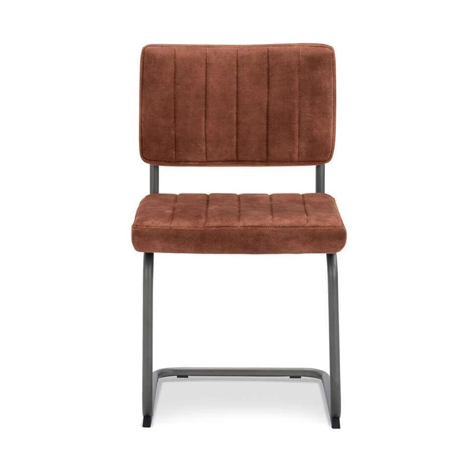 Eetkamerstoel Mae is bekleed met een hippe trendy velourse stof Adore in de kleur koper. De eetkamerstoel heeft met zijn verticale stiknaden een eigentijdse retro look en een fijn zitcomfort. Daarnaast is de stoel uitgevoerd met een Gun colored swing frame. Eetkamerstoel Mae is per twee stuks verpakt en is verkrijgbaar in meerdere velvet kleuren.