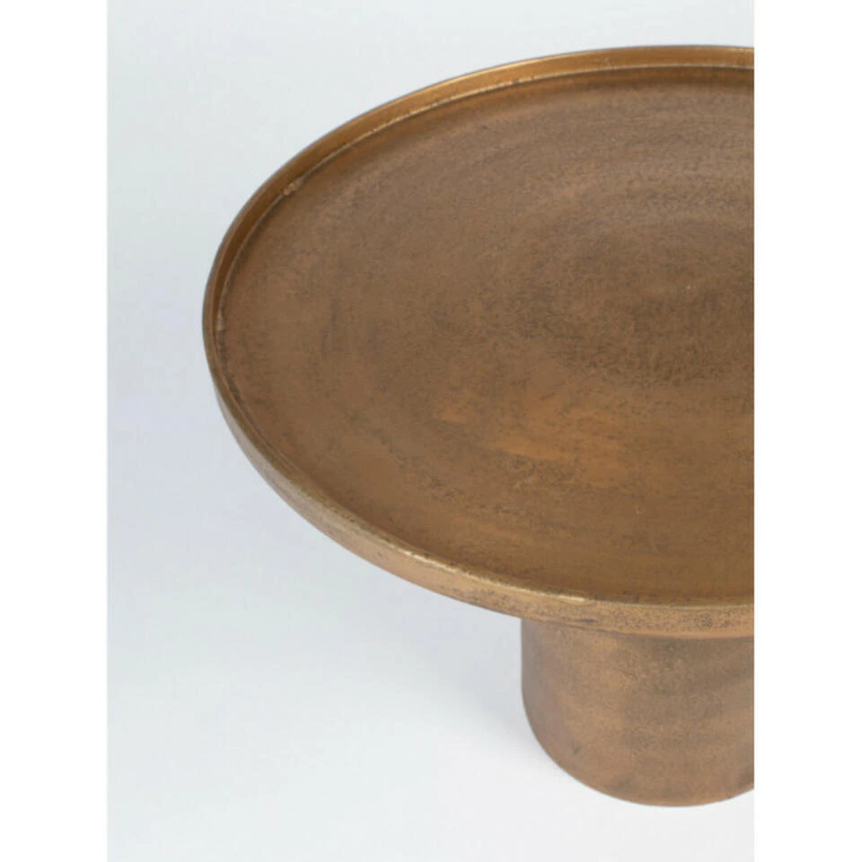 Geniet van het unieke design van salontafel Mason! Deze mooie salontafel komt uit de collectie van het woonmerk Puur en heeft een afmeting van Ø60xH40 cm. Hij is voorzien van een rond aluminium tafelblad met een dikte van 17.50 mm en een antieke messingkleur als afwerking. Onder dit blad bevindt zich het speelse onderstel, welke eenzelfde ruwe afwerking heeft gekregen als het tafelblad. Opvallend aan het design van dit tafeltje is de subtiel opstaande rand en de prachtige vorm van het onderstel. Plaats salontafel Mason in de woonkamer en combineer hem ook met de kleinere bijzettafel Noah. Maximaal draaggewicht: 10 kg.