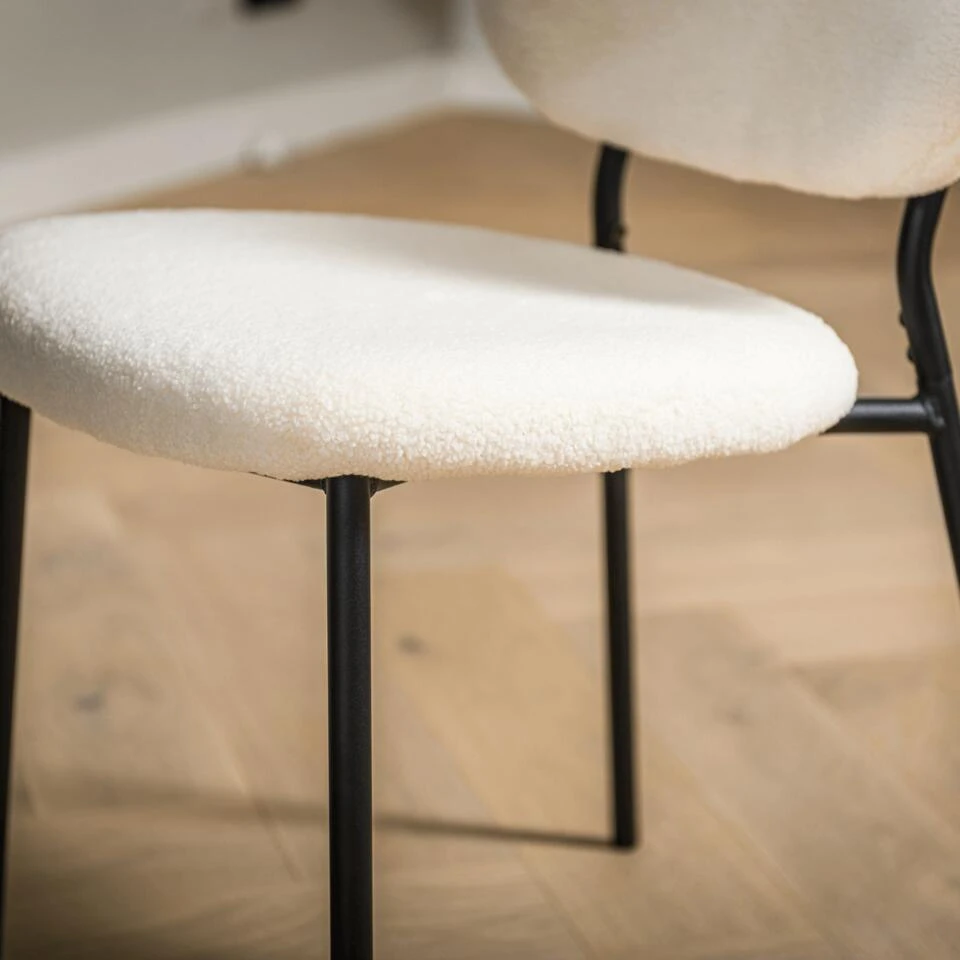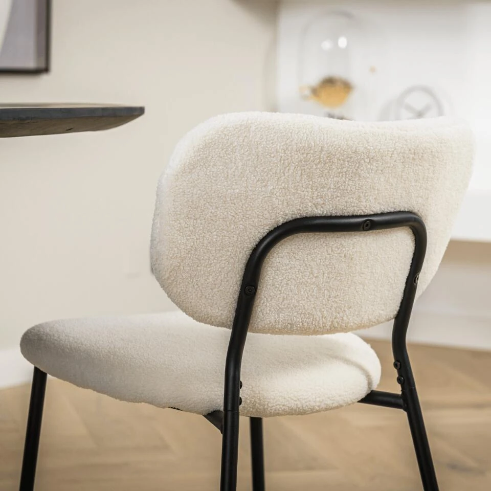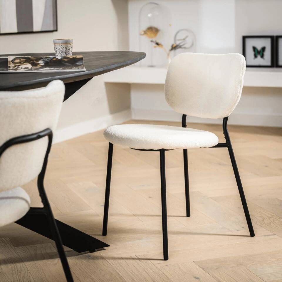 De Rutger eetkamerstoel valt op door zijn eenvoudige design en mooie materialen. De stoel is bekleed met een fijne naturel teddy stof. De stoel heeft een openlijke uitstraling door een aparte rugleuning en zitting. De ronde vormen zorgen voor een prettige uitstraling. Het frame is gemaakt van zwart staal. Dit zorgt voor een stoere uitstraling. Rutger is van alle kanten leuk om naar te kijken. Ook ideaal om te gebruiken op kantoor of als bureaustoel. Rutger is te bestellen als set van twee stuks. De prijs wordt weergegeven per stuk.