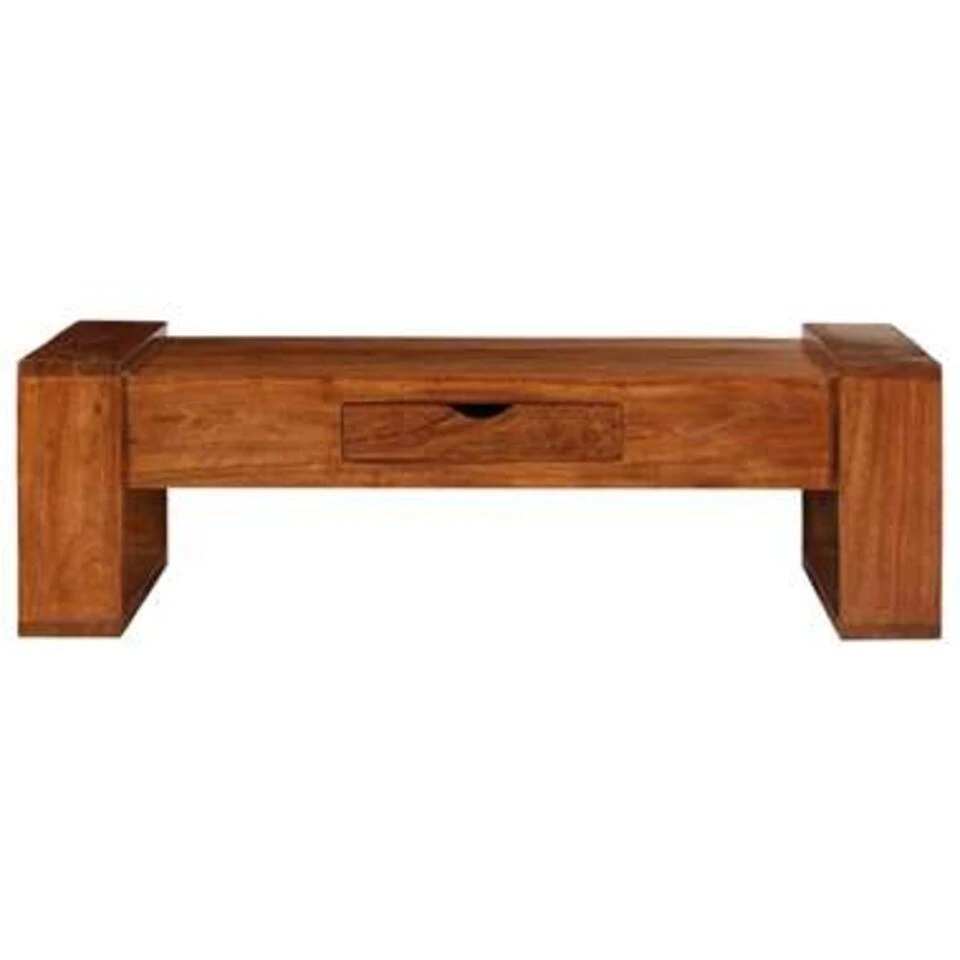 Deze salontafel is gemaakt van massief, hoogwaardig acaciahout, een tropisch hardhout, dat weerbestendig en duurzaam is. Elke stap van het proces wordt met de grootste zorg uitgevoerd, of het polijsten, schilderen of lakken is. Het vakmanschap en de mooie houtnerven maken elk meubel uniek en enigszins anders dan de rest. Het stevige tafelblad biedt ruimte om snacks, fruitmanden en andere, decoratieve voorwerpen te plaatsen. De tafel heeft een kleine lade om je spulletjes overzichtelijk en binnen handbereik te houden. Het product is al gemonteerd; er is geen montage vereist.