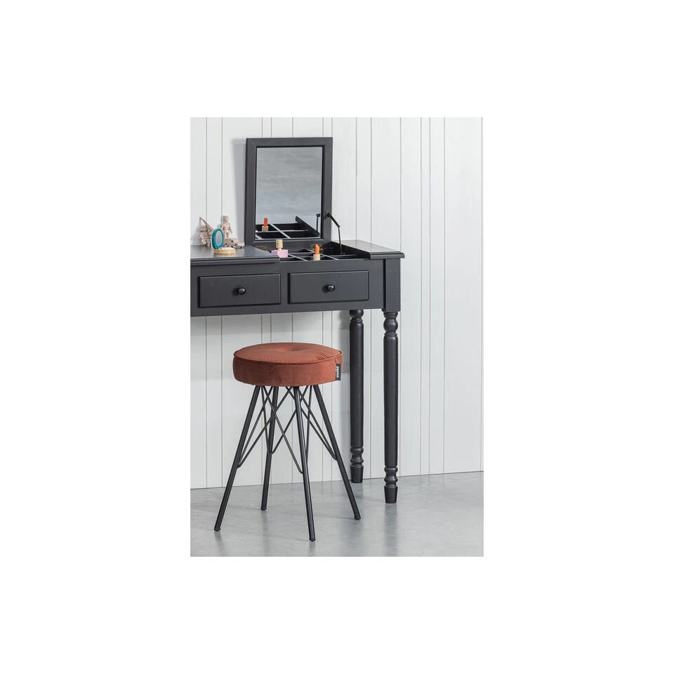 Bella is een opvallende, moderne en speelse kruk uit de collectie van het Nederlandse merk WOOOD. De top van de Bella kruk is bekleed met een mooie velvet stof (100% polyester) in de kleur brick red. Het onderstel is gemaakt van metaal met een zwarte afwerking. Door deze combinatie van kleuren en materialen heeft de kruk een speelse, vriendelijke en moderne uitstraling.